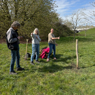 Door naar de (doorgeschoven) klusdag op zondag 12 oktober. Op deze zondagmorgen zijn er in de voedseltuin een kersenboom,