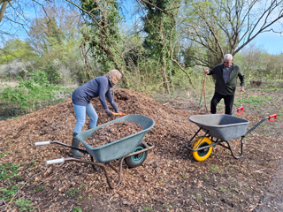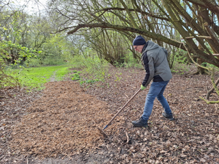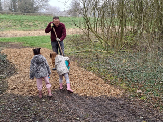 Verder zijn er nog houtsnippers van de vorige klusdag over die uitgestrooid kunnen worden, bijvoorbeeld rond de appelbomen